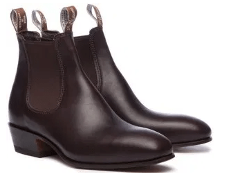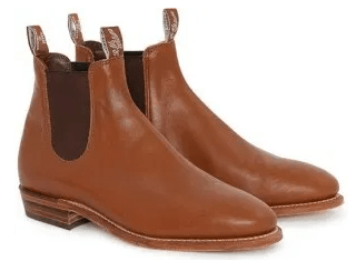 Suede leather uppers. Full kid lining. R.M.Williams signature tugs. Welt lasted. Narrow medium toe and block leather heel. Leather sole.